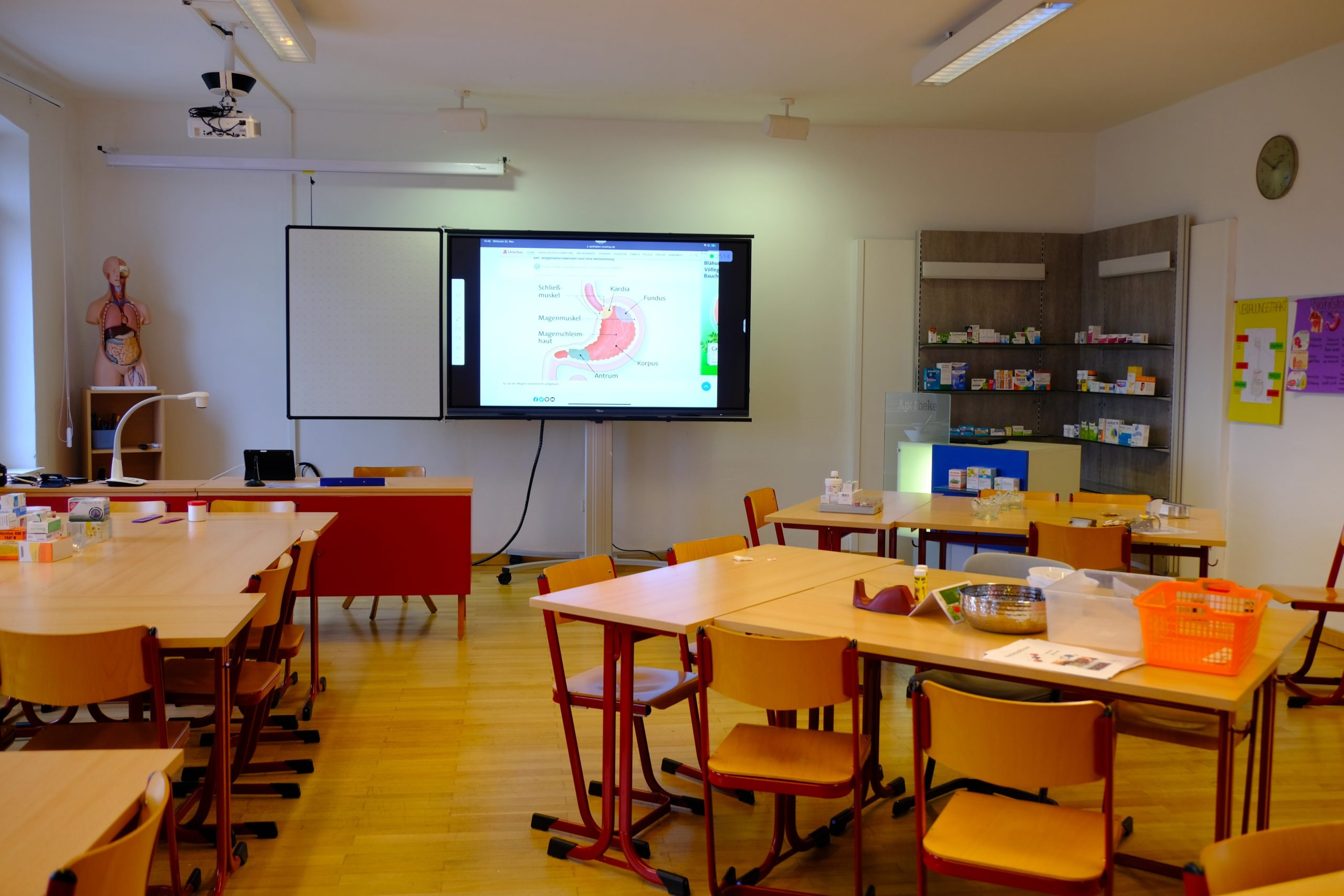 Unsere Klassenzimmer und Labore sind modern ausgestattet, unter anderem mit Whiteboards und Tablets für alle Lernenden.